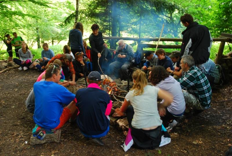 Potom sa účastníci výstupu presunuli k symbolickému cintorínu, kde ma Zuzka Krajčiriková upevnenú pamätnú tabuľku, ktorú sem umiestnili po jej tragickej smrti pred 7 rokmi v pohorí Vtáčnik. Tu si ju uctili minutou ticha a položením venca. Z vrcholu Vysokej sa potom prešlo k trampskej chajde pod Vysokou, kde sa už tradične opekalo. Výstup sprevádzali opäť pán Pavol Fupšo a Martin Mráz, od ktorých sa účastníci mohli dozvedieť zaujímavosti o okolí.