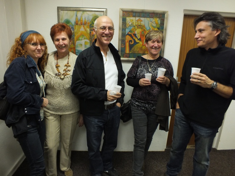 Zuzana Pucherová, Michal Režný, Gabriela Peťková a Matej Fišer za gitarového sprievodu Petra Mullera osviežili vernisáž spevom.