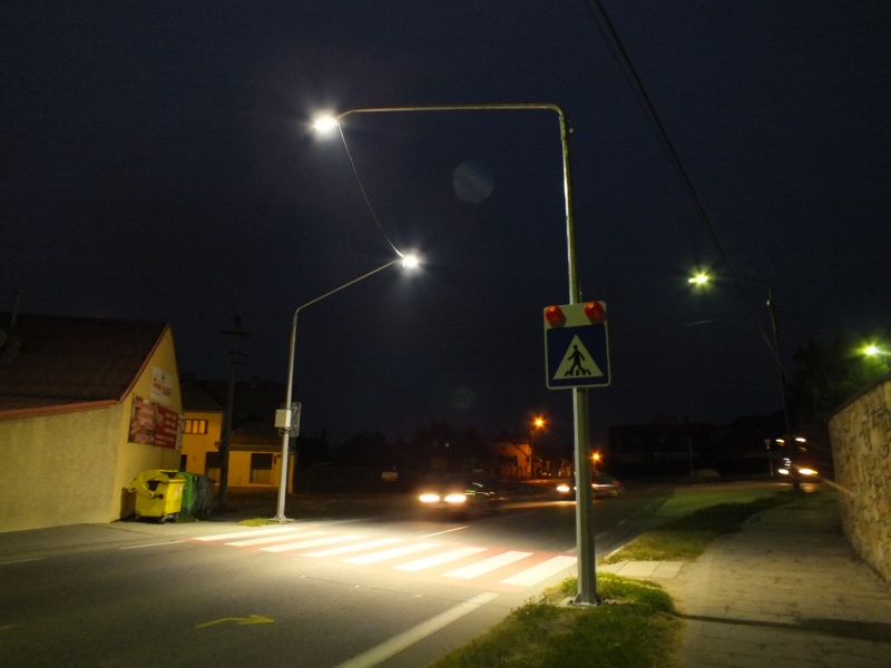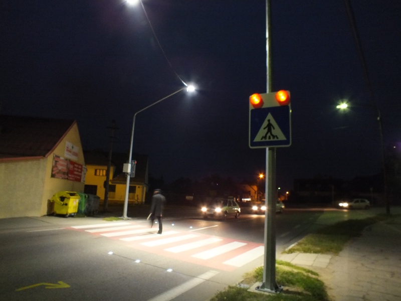 Už samotné priechody pre chodcov sú výrazné, nasvietené zvrchu, pričom osvetlenie má intenzitu 8-tisíc lumenov, teda ako jasný biely deň. Svetlá sa automaticky zapnú, akonáhle príde chodec k priechodu, zároveň sa rozsvietia aj diódové svetlá zabudované vo vozovke a výstražné zvislé dopravné značenie. Zariadenia sú napojené na obecné osvetlenie a ich spotreba je minimálna, nakoľko ide o diódovú technológiu. Náklady na jeden priechod sú cca 15-tisíc €.