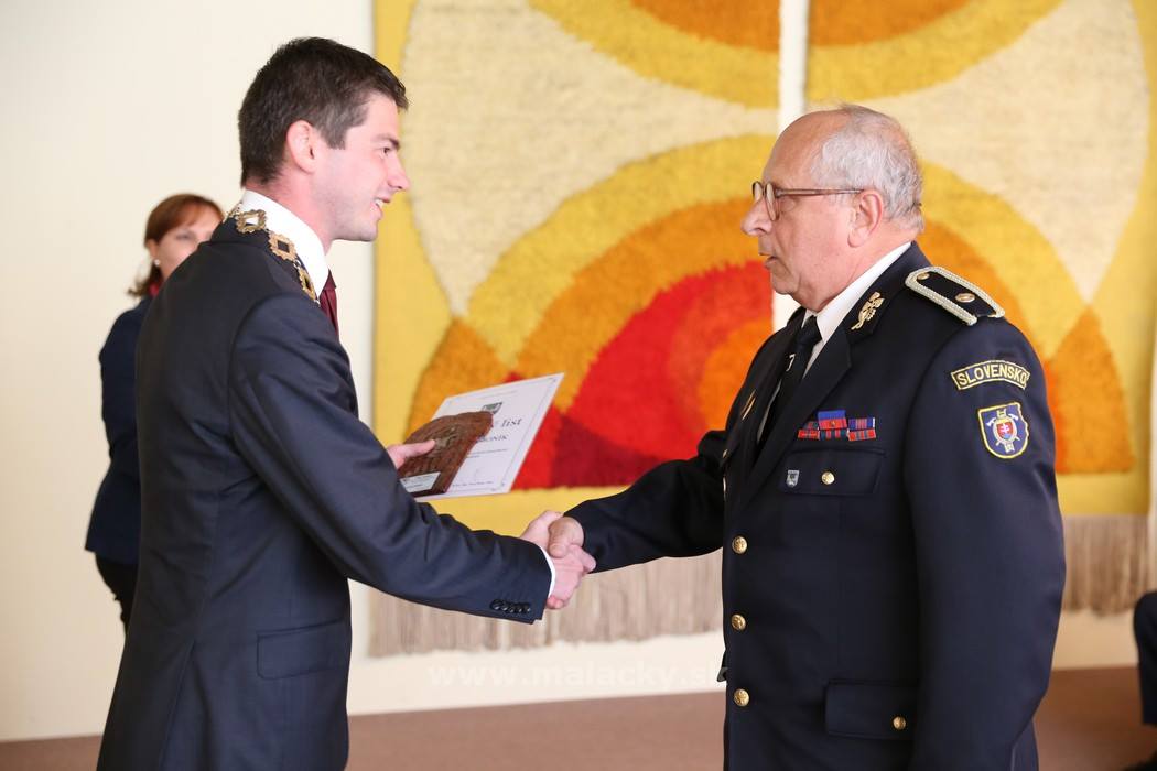 Na schôdzi sa odovzdávali mnohé ocenenia, ďakovné listy či diplomy. Jedno z ocenení - odznak sv. Floriána dostal za rozvoj spolupráce aj primátor mesta.