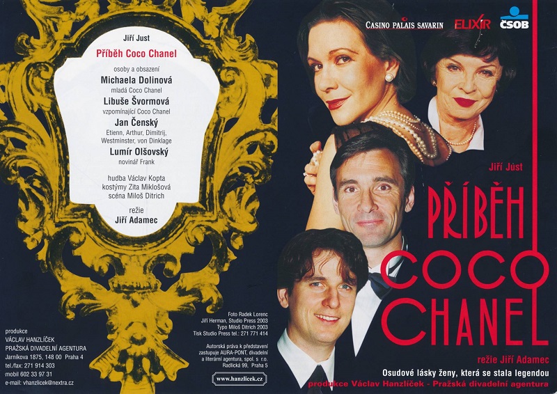 Srdečne Vás pozývame na divadelné predstavenie Príbeh Coco Chanel so známymi českými hercami - Michaelou Dolinovou, Libušou Švormovou, Janom Čenským a Lumírom Olšovským/Filipom Sychrom pod režisérskou taktovkou Jiřího Adamca.