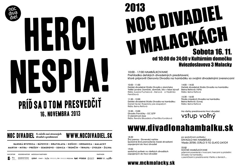 Tešíme sa na Vás v pondelok 18. 11. o 19.00 h v Kultúrním domečku (kino Záhoran), Hviezdoslavova 3 . Vstupné: 15 €