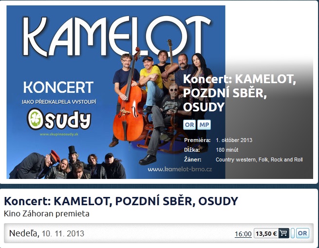 Milovníci folk a country hudby, spríjemnite si novembrovú nedeľu na Trojkoncerte skupín Kamelot, Pozdnízběr a Osudy, ktoré patria v tomto žánri k špičke v Čechách a na Slovensku.