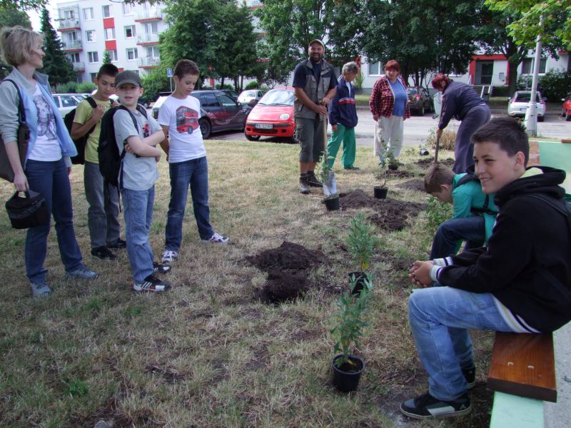 "Srdečná vďaka všetkým, čo prišli pomôcť. Stankovi Slezákovi, ktorý od začiatku pomáha a poskytuje odborné rady a ešte si to aj "odmaká, Andrei Cvečkovej a deťom z Prírodovedného krúžku ZŠ Dr. J. Dérera, ale aj iným žiakom, prišli, maľovali, sadili. Jozefovi Pullmanovi z KONSADU. Majke Marekovej, ktorá ešte bude skrášľovať aj knižnú búdku. Ale aj Mestu Malacky, ktoré podalo pomocnú ruku a uvoľnilo vo štvrtok svojich zamestnancov. Adamovi, ktorí upevňoval dosky, trom dámam z TEKOS-u, ktoré pomáhali so zeleňou. Vďaka patrí Majke Gajdárovej a Františkovi Klímovi z mesta. A všetkým, čo držali palce a akýmkoľvek spôsobom prispeli k zdarnému koncu."