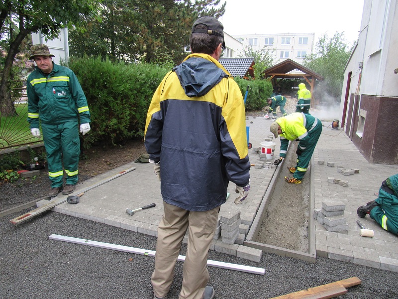 Zriadením záhradky to neskončilo. Pred letom navštívil Vstúpte riaditeľ divízie služieb spoločnosti Nafta Ing. Michal Ševera. Vedenie mu predstavilo myšlienku revitalizácie dvora s odstránenením nebezpečných vyštrbených betónových plôch. Do zreálnenia premeny exteriéru vo Vstúpte sa zapojili zamestnanci Nafty najskôr zbierkou. Vyzbierali 885 € a spoločnosť cez Nadáciu SPP prispela grantom 900 €. Pri finančnej podpore to však nezostalo. V októbri prišiel tím ľudí z Nafty, ktorý pod vedením M. Ševeru pokladali celý deň zámkovú dlažbu na vopred pripravenú plochu. Stredovú „zelenú časť“ sponzorsky skrášlil Ing. Jozef Pullman zo spoločnosti KONSAD.