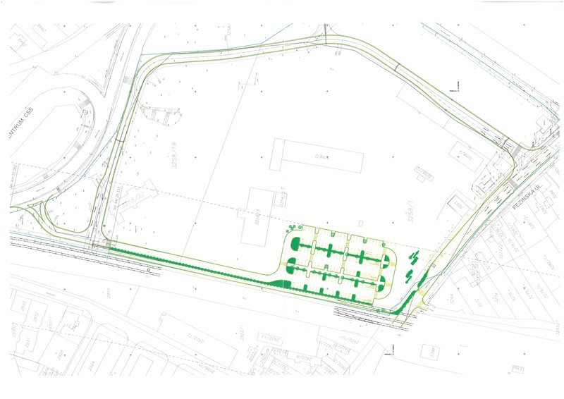 na priloženom obrázku môžete vidieť, že vlastník pozemku (súkromný investor) plánuje stavať novú komunikáciu medzi nadjazdom a Pezinskou ulicou. Z tejto komunikácie je najefektívnejšie dotiahnuť k novému záchytnému parkovisku prístupovú komunikáciu, keďže by mala obslúžiť príjazd z Rohožníka, Studienky, Perneku a regionálnej cesty na záchytné parkovisko.