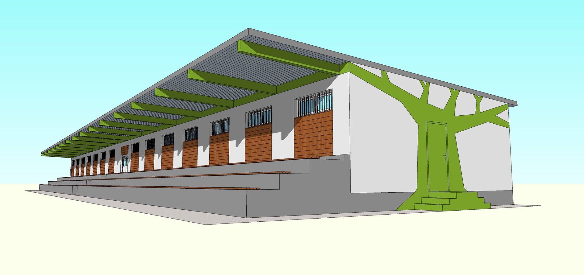 Ilustrácia opravy budovy tribúny pri hádzanárskom ihrisku v Zámockom parku. Mesto tu plánuje do konca roka vybudovať nové multifunkčné ihrisko.