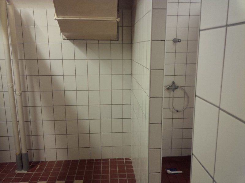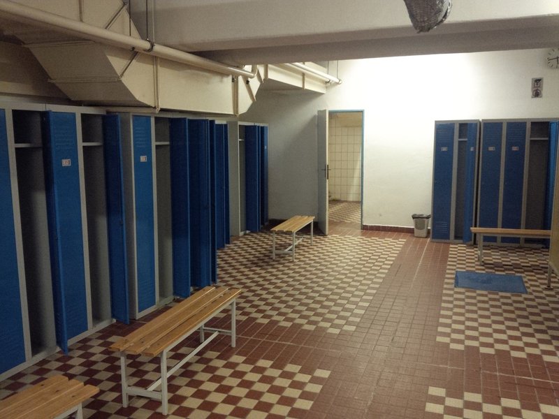 V športovej hale je ešte pôvodný stav šatní a spŕch. Podľa viacerých návštevníkov bol stav sociálnych zariadení katastrofálny.