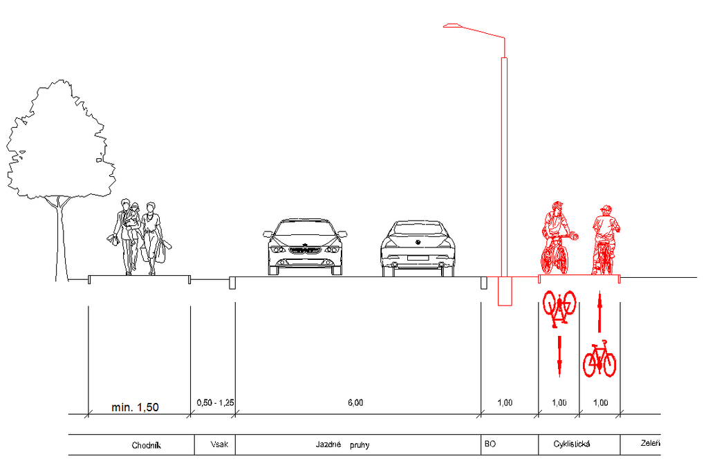 Mestský úrad nám poskytol rez budúceho usporiadania Cesty mládeže, kde už vidno presun osvetlenia aj plánovanú cyklotrasu.