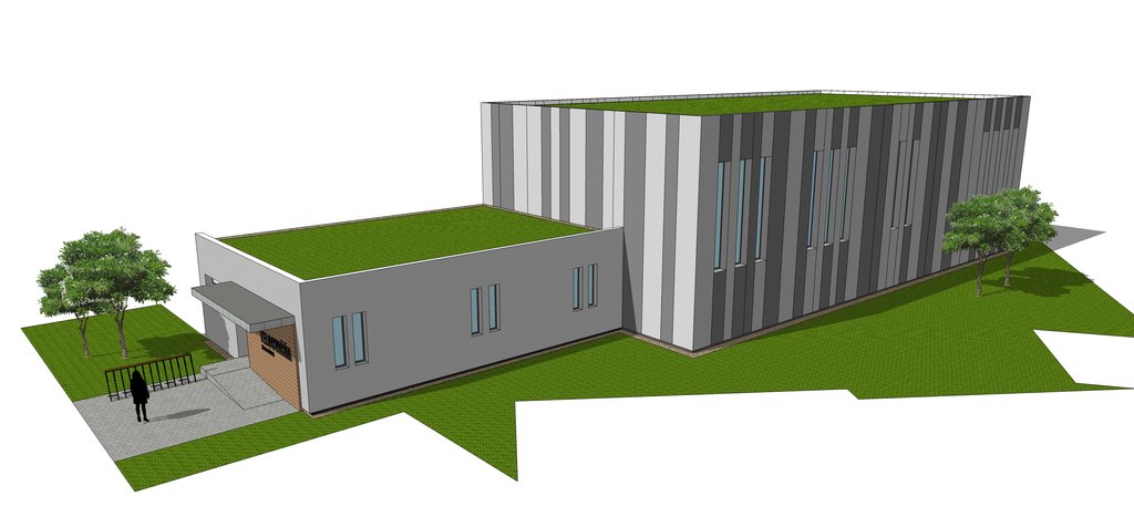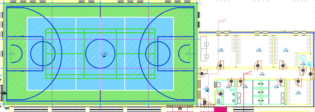 Architekt Branislav Škopek z mestského úradu pripravil telocvičňu s plochou ihriska 24x12 m v najvyššom štandarde povrchu taraflex, zelené strechy, samostatné vstupy s obkladmi.
