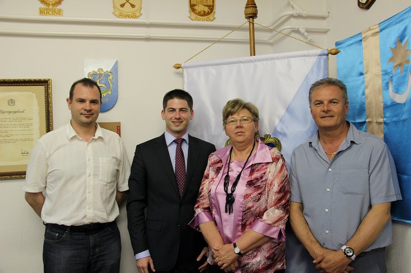 Pri prijatí na radnici v Sarvaši. Zľava viceprimátor mesta Pál Hodálik, predsedníčka slovenskej samosprávy Anna Franková a prednosta mestského úradu János Melis.