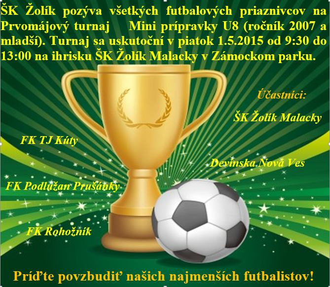 1. mája odohrá Mini prípravka U8 (ročník 2007) turnaj v rámci prvomájových osláv. Zápasy Mini prípravky môžete sledovať na ihrisku ŠK Žolík (bývalé škvarové ihrisko).
