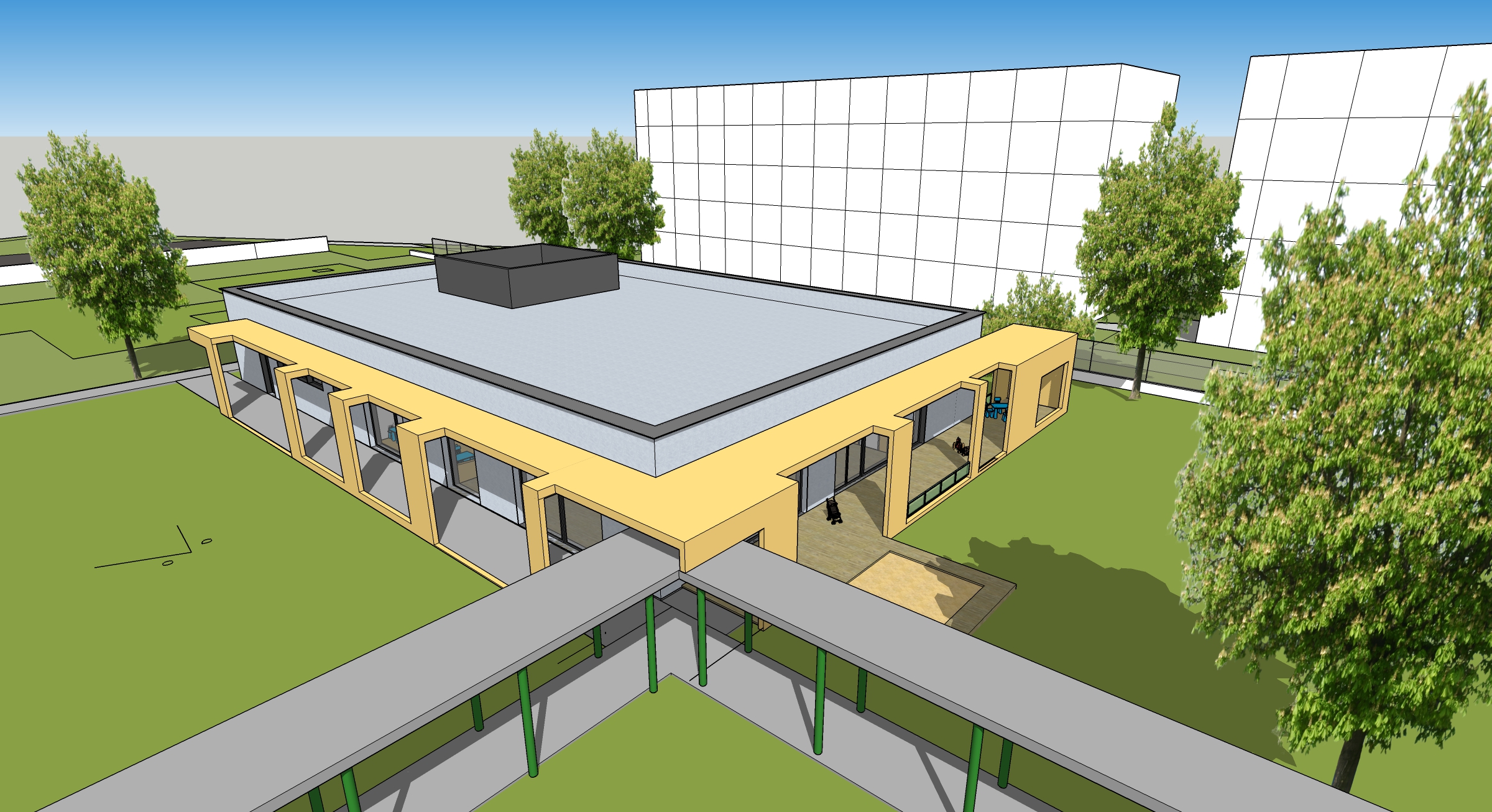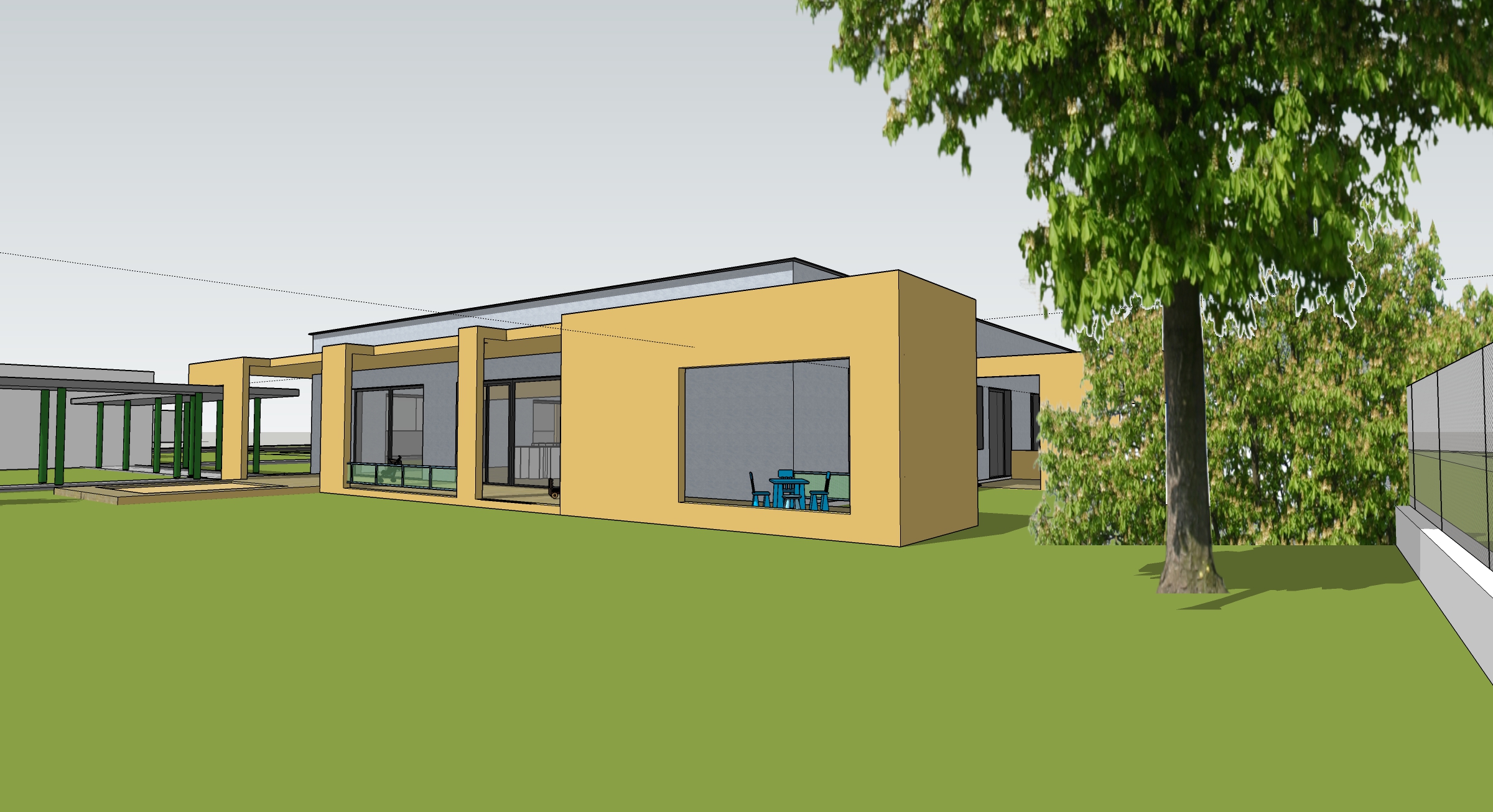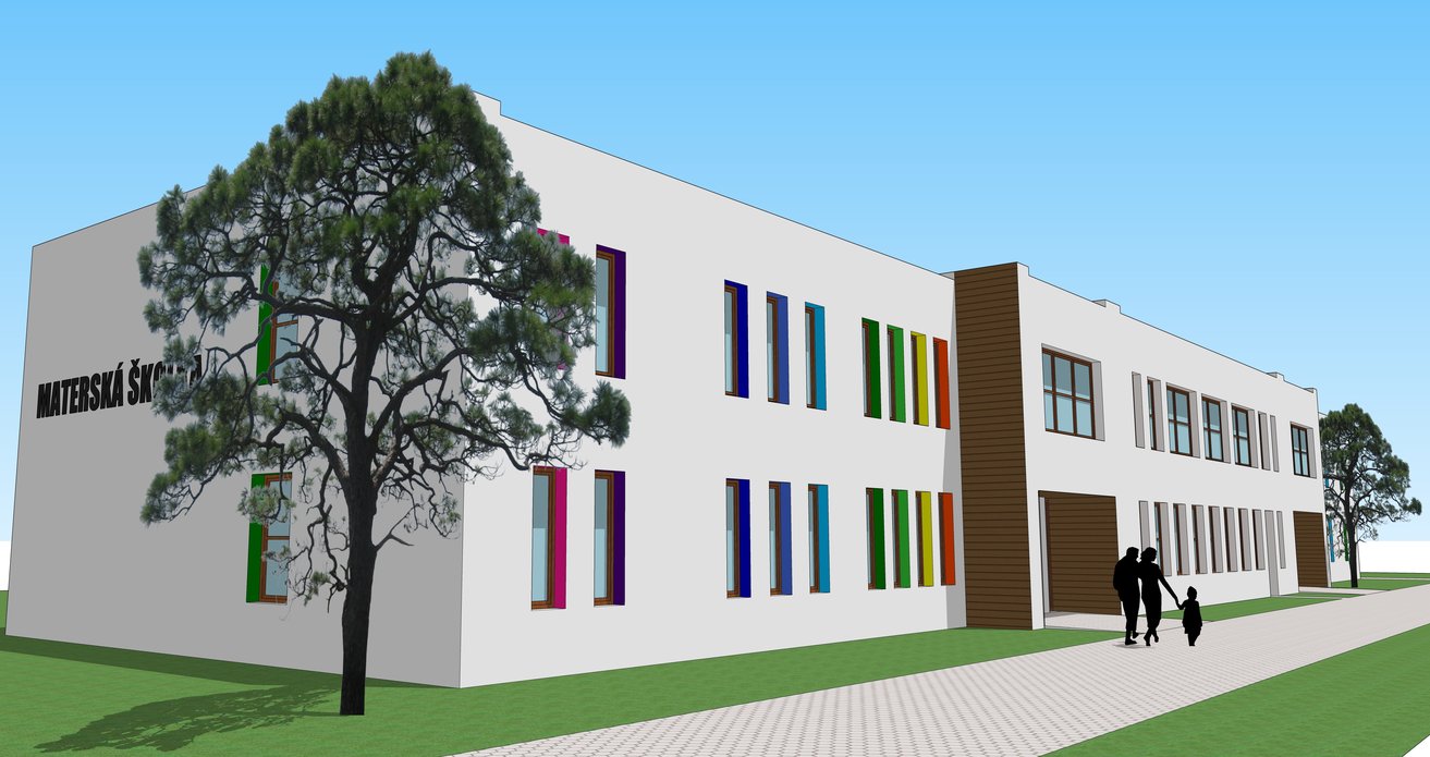 V objekte škôlky na Kollárovej ulici sa budú typovo meniť okná a fasáda bude kombináciou bielej, farebnej a prírodných materiálov s drevom a kameňom.