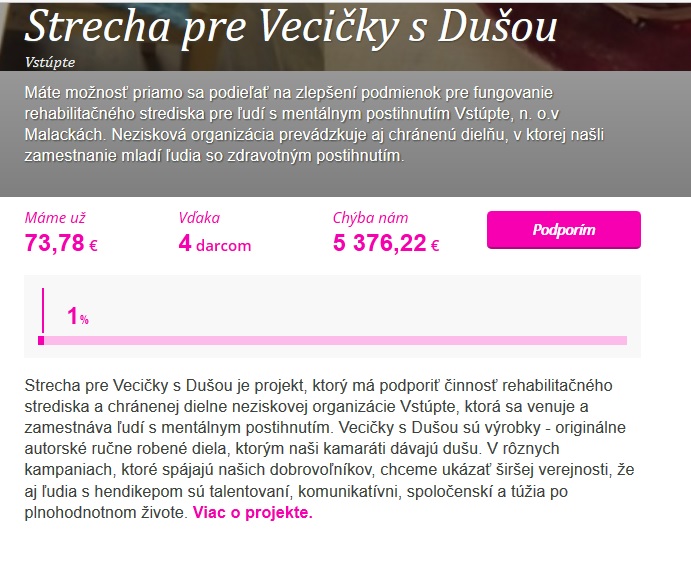 Ak ste nestihli prísť na Kláštorné námestie, podporiť Vstúpte môžete do konca roka zaslaním príspevku cez webovú stránku Dobrej krajiny – projekt Strecha pre Vecičky s Dušou. Vzácni sú najmä stáli donori, ktorí sa rozhodnú čo i len najmenšiu čiastku posielať na účet pravidelne.