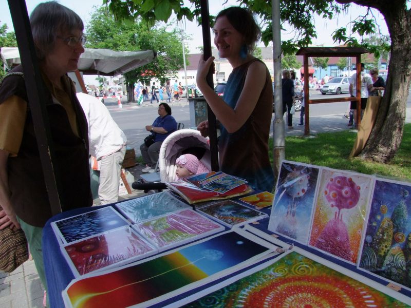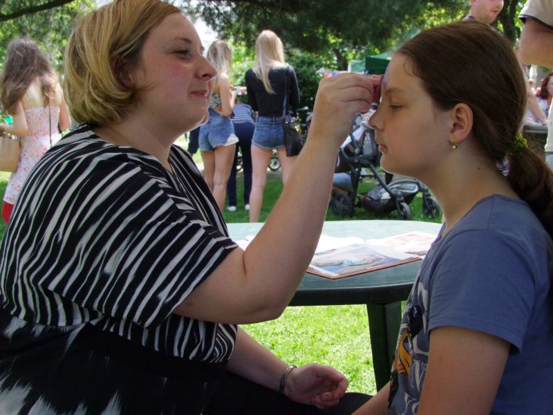Elenka Sedláková zo ZUŠ Sekule maľovala ako profíčka na tváričky a veru, to pobehovalo námestím šťastných detí.