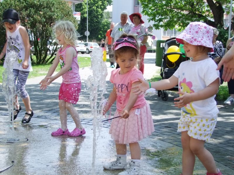 Fontána v centra prináša v horúcich dňoch osvieženie a radosť najmä pre najmenších.