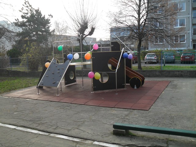 Deti elokovanej budovy na Rakárenskej ulici majú od minulého týždňa dôvod na radostnejšie prežívanie pobytu vonku. Prečo? V areáli školského dvora nainštalovali novú drevenú preliezačku. Realizovala ju firma Intermag s.r.o. a vďaka jej majiteľovi pánovi Barniakovi. S jej zaobstaraním nám pomohla aj firma Volkswagen Slovensko, ktorá poskytla financie.