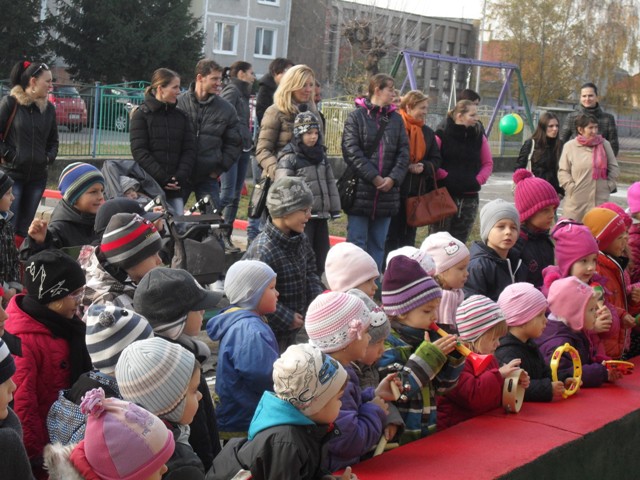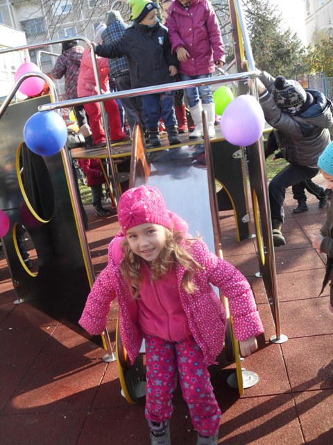 Krásne slnečné počasie privítalo v utorok 12.11. malých žiakov a nás rodičov na školskom dvore MŠ elokovaných tried na Bernolákovej ulici v Malackách. V doobedňajších hodinách sa tu spevom a tancom otváralo nové Zábavné ihrisko. Programom sprevádzala Mia, ktorá deti rozšantila a zabavila. Všade vládla radosť a dobrá nálada. Deťúrence dostali bublifuky a ich nové ihrisko pokrstili bublinkami. Neskôr sa škôlkari zahrali na vláčik, pohrali a ponaháňali na novom ihrisku.