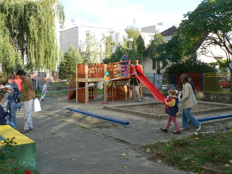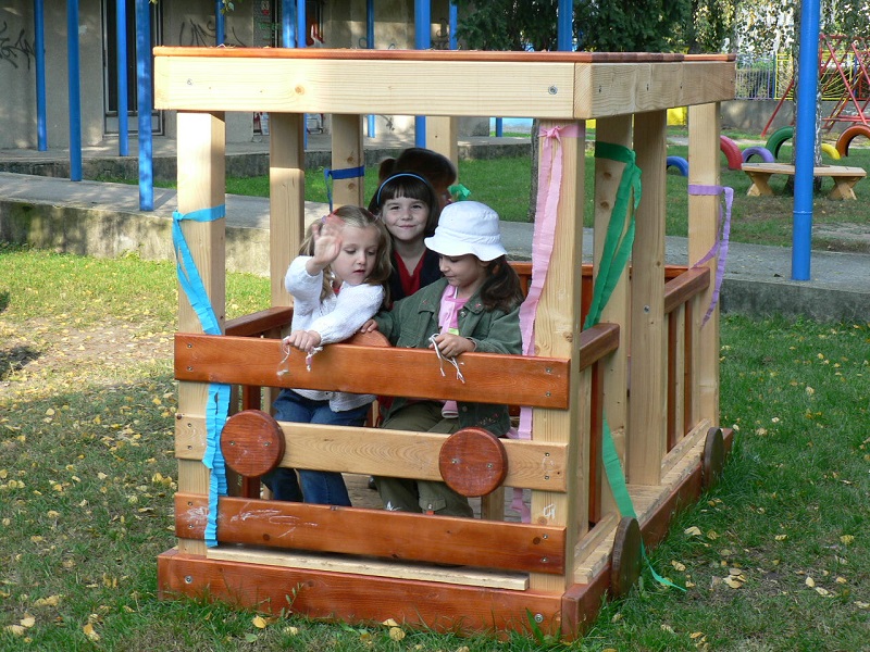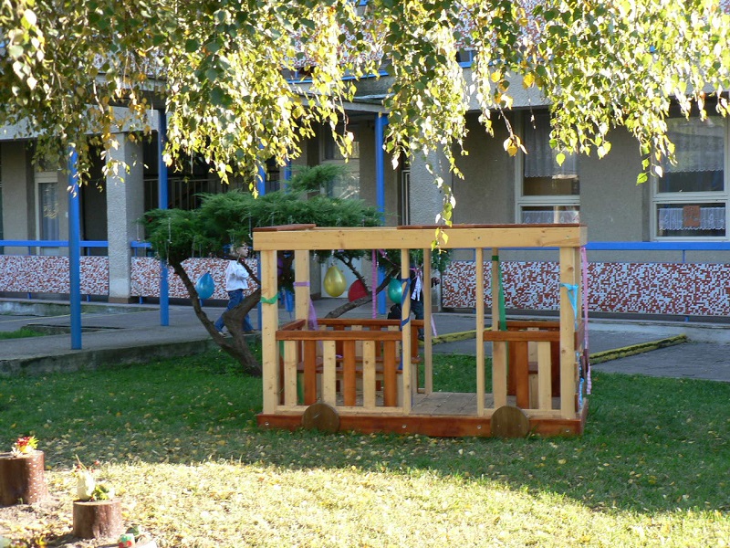 Projekt, ktorý vtedy vypracovala Mgr. Dušana Bieleszová a Zuzana Zieglerová, podporil Holcim sumou 50 000 Sk (cca 1660 €). Za získané peniaze boli zakúpené drevený vláčik, ktorý sa nám ako jediný zachoval, drevený autobus a drevená preliezka. Čas zanechal stopy aj na nových preliezkach a v roku 2013 ich používanie bolo ukončené s ohľadom na bezpečnosť detí.