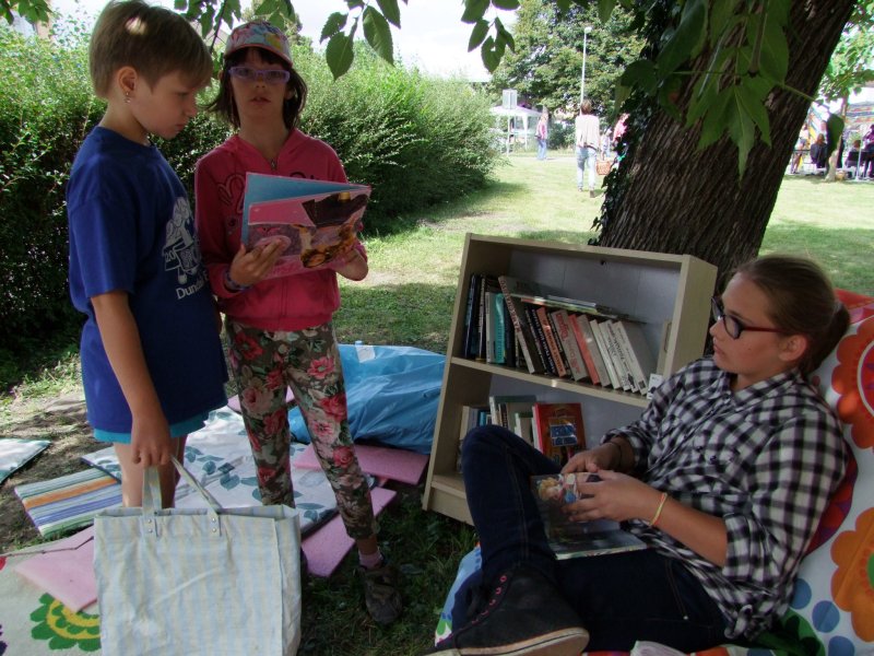 Čitáreň pod stromom prilákala aj mladšie ročníky. Deti sa potešili aj knižným darčekom. Zo šošovice si ich mohli odniesť domov.