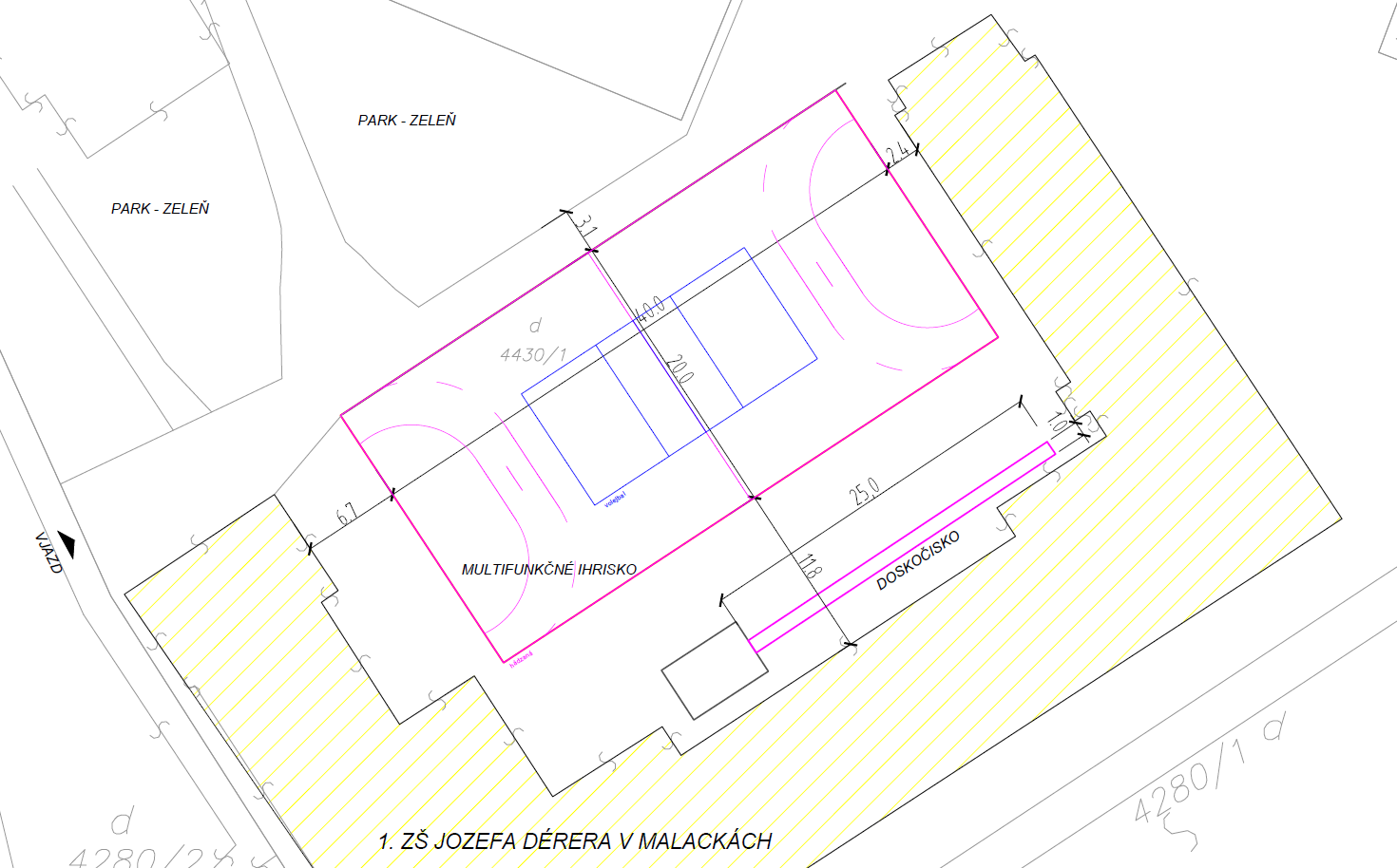 Nové multifunkčné športovisko s novým doskočiskom bude mať kompletne vymenený gumený povrch, okrajové prístupy budú v dvore vydláždené zámkovou dlažbou. Spolu so športoviskom sa zrekonštruujú hlavné vetvy kanalizácie do školy.