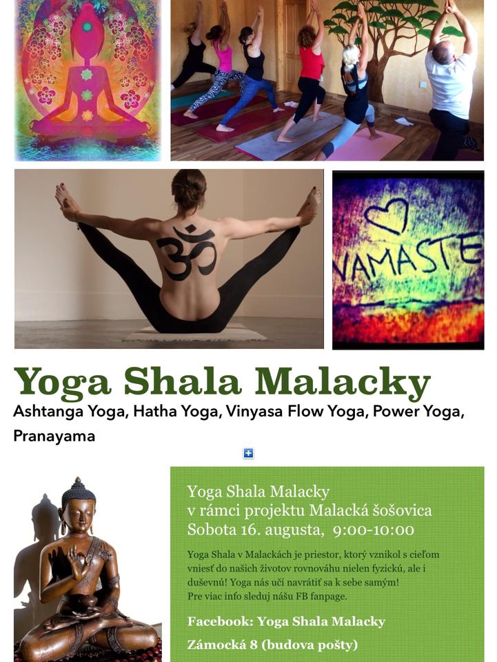 9.00 - 10.00 h Yoga (9.00 - 9.20 h Pranayama s Palím, 9.20 - 10.00 h Astanga vinyasa so Simi) na trávnatej ploche pred Malinou