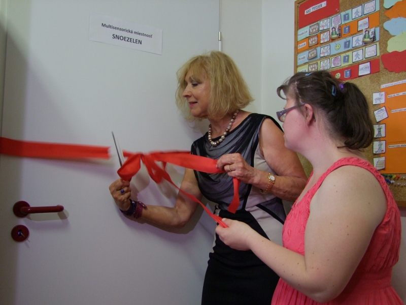 Riaditeľka Martina Ambrušová privítala hostí a v príhovore povedala, že sa jej splnil sen ešte z vysokoškolských čias, preniesť inovatívnu metódu snoezelen, ktorá ponúka nové možnosti rozvoja pre klientov s najťažšími stupňami postihnutia, do Malaciek. Vďaka pani Márii Vaškovičovej a nadácii, ktorá poskytla štedrý príspevok.