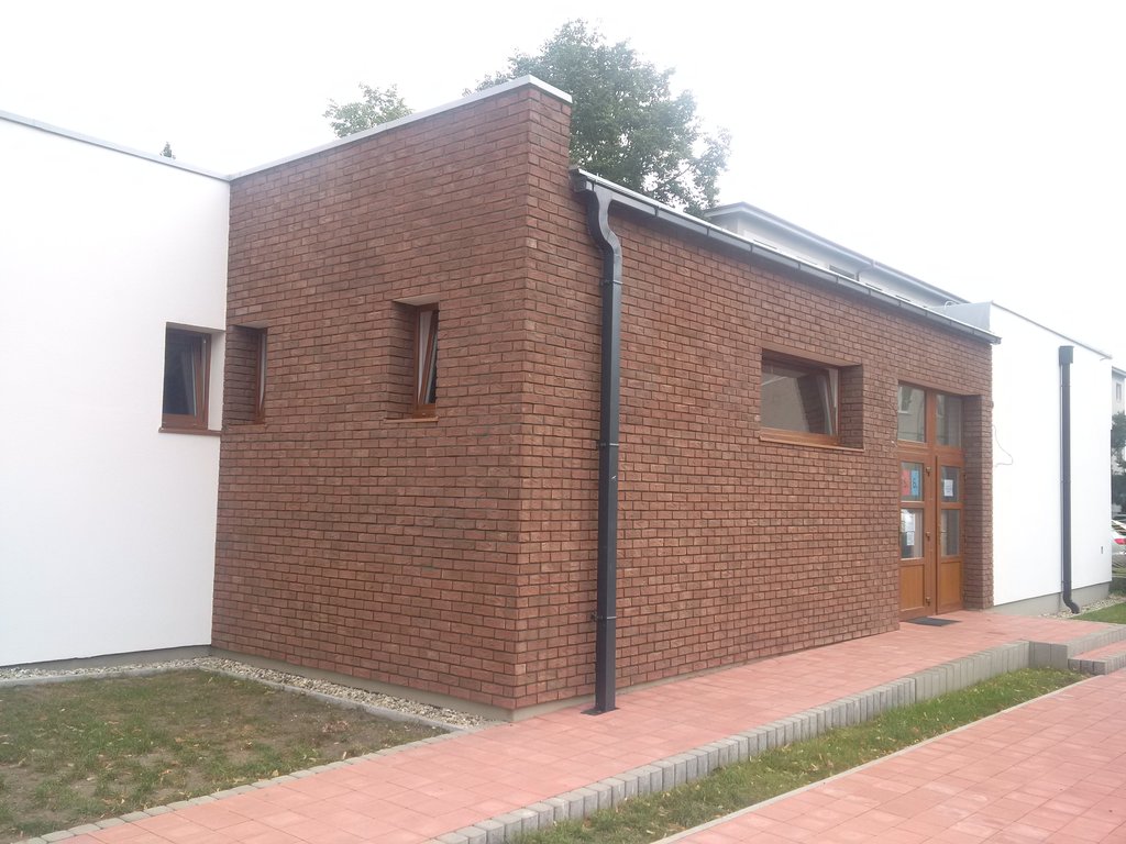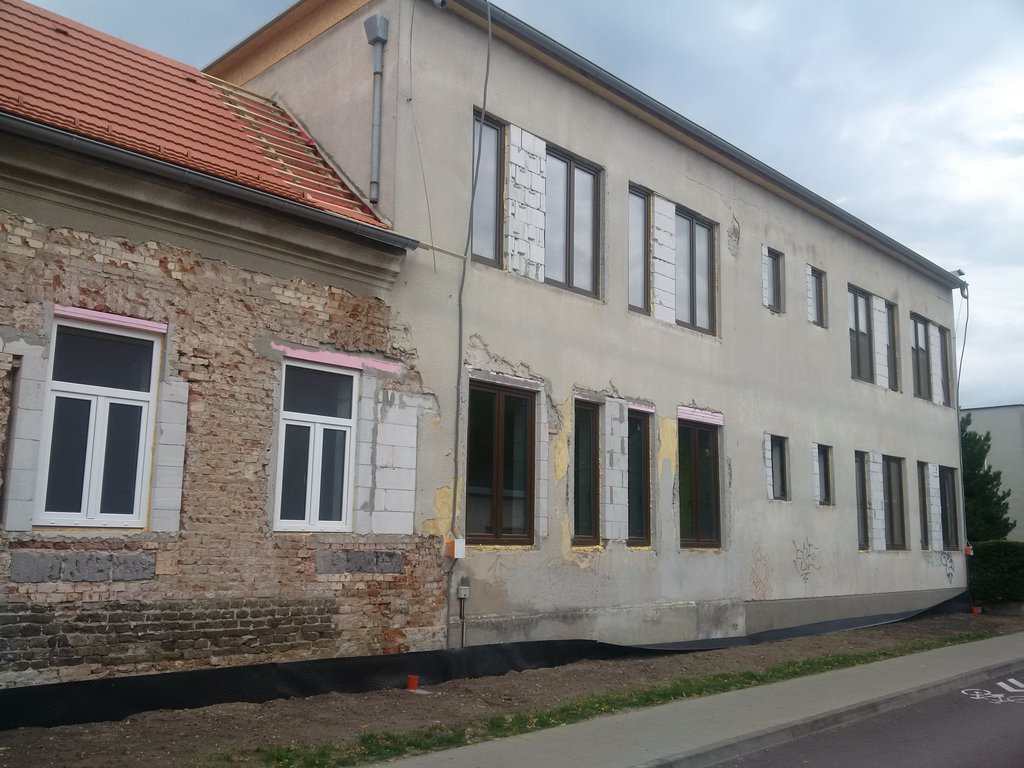Na malom pavilóne škôlky na Bernolákovej ulici bola dokončená vonkajšia fasáda s obkladom.